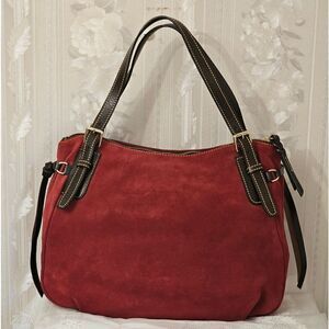 Suede material with leather trip handles and zipper pulls