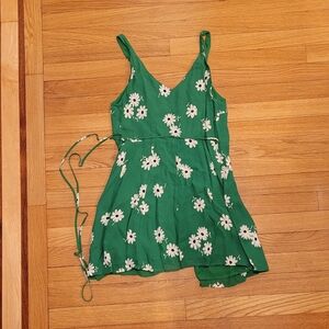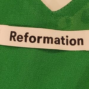 Chic and stylish, this Reformation Anchorage mini wrap dress features a green and white floral pattern. Perfect for any occasion, its sleeveless design and XS fit ensure comfort and elegance.