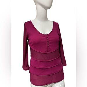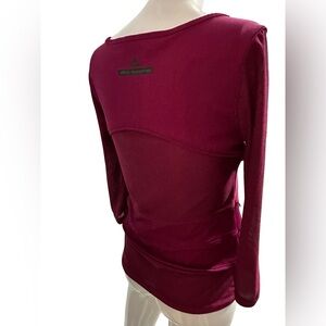 Authentic Stella McCartney long sleeve top in a stunning berry/magenta shade. Designed with a scoop neckline, button-front detail, and subtle mesh paneling that creates a flattering, structured silhouette. A versatile piece that transitions effortlessly from casual to elevated styling.