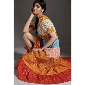 Anthropologie Boho Hippie Cottagecore Size S Floral Patchwork Tiered Maxi Dress