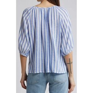 Rails Kristie Stripe Linen Blend Shirt Women's Size Large Balloon Sleeve Blouse