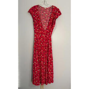 Gap Wrap Dress Small Women Maxi Pink Floral Cap Sleeve Y2K Romantic Fairy