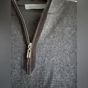 Elegant charcoal sweater with a sleek zip-up design. Ideal for layering.