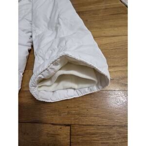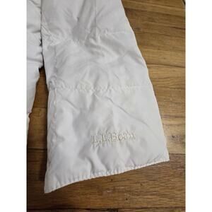 The L.L. Bean Vintage Goose Down Long Puffer Coat in women's size Large is a classic and stylish choice for colder weather. Made with a soft polyester outer shell and insulated with cozy goose down, this cream-colored coat features a quilted design and a zipper closure. The midi length and solid pattern make it a versatile piece that can be dressed up or down for any occasion. Perfect for staying warm and chic in the colder months, this L.L. Bean coat is a timeless wardrobe essential.