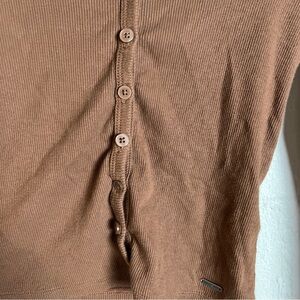 Vintage Hollister Brown Button Down Baby Tee XS Y2K