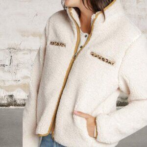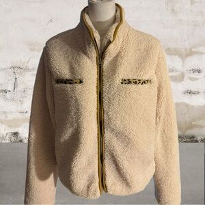 Thread & Supply Cream Sherpa Jacket with Leopard Details Size Medium