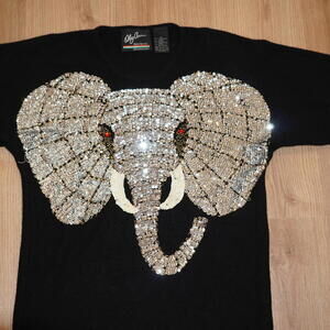 Make a statement with this rare vintage gem from the "Secretary of Style," Oleg Cassini! This stunning black sweater features a dazzling sequin elephant design that is both elegant and whimsical. The luxury lambswool and angora blend is incredibly soft and warm—they truly don't make them like this anymore.