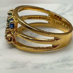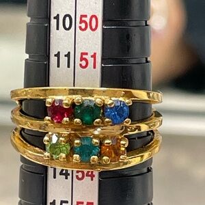 Vintage mothers ring Gold tone Multi Gemstone 6.5 Stackable 3 Band 6 stone