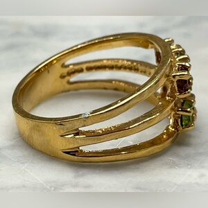 multi gemstone ring, rainbow ring, gold tone ring, colorful ring, stackable ring, statement ring, boho ring, vintage ring, cocktail ring, gemstone band, birthstone ring, unique ring, fashion ring, size 6.5 ring, gift for her