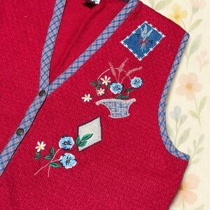 Vintage Stephanie K red embroidered sweater vest 🌷