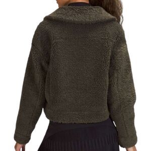 Lululemon Textured Fleece Button Jacket Womens 14 Dark Olive Lined Comfy Cozy