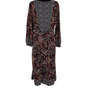 Knox Rose Womens Small S Paisley Rayon Long Sleeve Boho Long Sleeve Dress New
