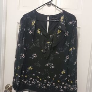 St. JOHN floral print Blouse Size Medium, silk, Sheer sleeves