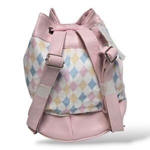 Rare vintage 2000s Y2K Sanrio Charmy Kitty pastel pink and blue backpack bucket bag. Super Rare! This is new with original tag attached. Some minor discoloration on the cord shown in photo. Charmy Kitty merch is hard to find! Circa 2006.