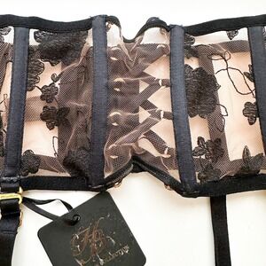 Honey Birdette Alice Black Floral Lace Suspender Garter Size XS NWT