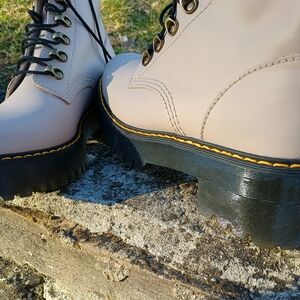 This is a brand new, wo tags, pair of the coolest Dr. Martens (Leona) heeled combat boots ever!! These beauties are literally to die for!! With that durable Docs leather, their tried-and-true "bouncing" sole, and the rad punker goth girl vibes, you cannot go wrong with these boots! They are the perfect hard-core boots for someone who loves to dress on the edge! US Ladies size 9, EU 41. If you've been looking for the perfect pair of heeled combat style boots, these are probably it! Big and badaS$ and in a nice muddy color, grab these boots up quick before they're gone!