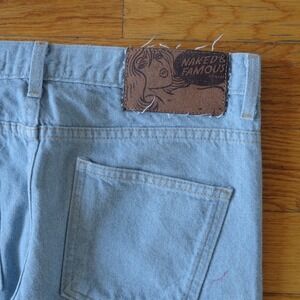 NAKED & FAMOUS DENIM Super Guy Stone Blue Recycled Selvedge Jeans Mens Size 34