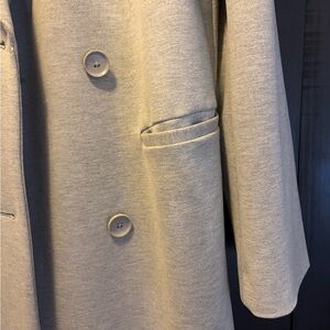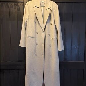 Chic light gray coat with a sleek design. Ideal for modern elegance. Excellent condition, work once and hung in closet since. Oversized fit.