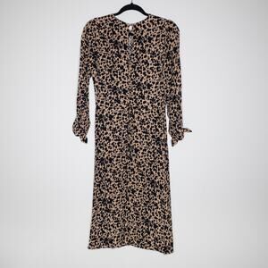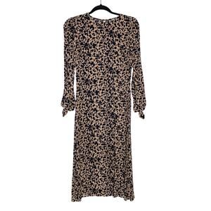 Reformation Port Dress Leopard Animal Print Tie Sleeve Modest Crepe Midi SZ 6