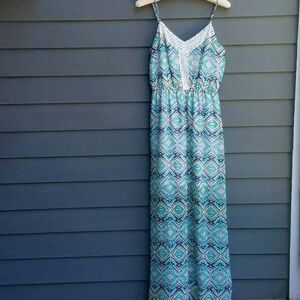 Maurices Blue Print Maxi Dress with Spagetti Straps size Medium