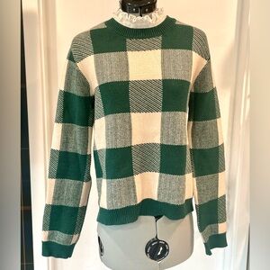 Anthropologie Buffalo Plaid Sweater, built in ruffle collar, S, like new