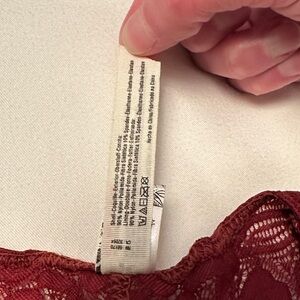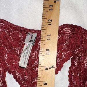 Experience comfort and style with this elegant lace bralette in a rich burgundy hue. Perfect for layering or wearing on its own. Only worn a handful of times.