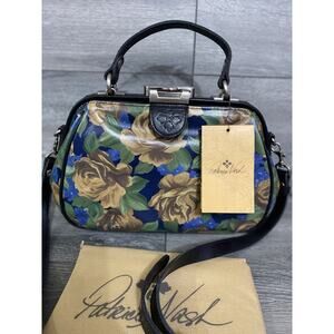 Patricia Nash GRACCHI SATCHEL Blue Sky Rose Leather flower bag B000574