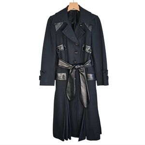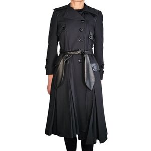 Teresa Tardia Wool Blend Black Belted Midi Fit and Flare Jacket