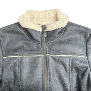 Stay cozy and stylish with this Prana Esme Sherpa Jacket! Featuring a chic charcoal gray faux suede exterior with contrast white stitching and a plush sherpa lining, this jacket is perfect for layering on chilly days. The zip-front closure and soft, warm interior make it both functional and fashionable.