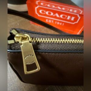 This Coach Plaza bag is crafted in a soft natural grain leather with a beautiful texture and soft feel. The interior is lined in a light being fabric and is the perfect size to carry all your day-to-day essentials including a phone, wallet, keys and other accessories. Wear as a short shoulder bag or convert it to a wristlet, either way she’s super cute!