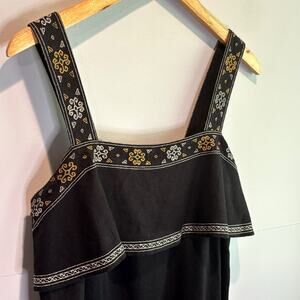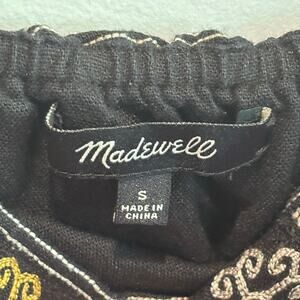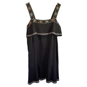 Madewell Black Linen Blend Embroidered Sleeveless Mini Dress - size Small