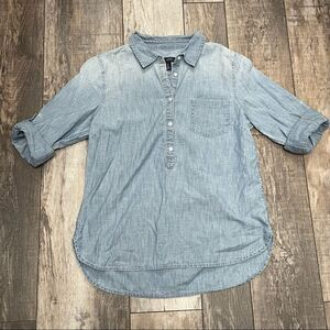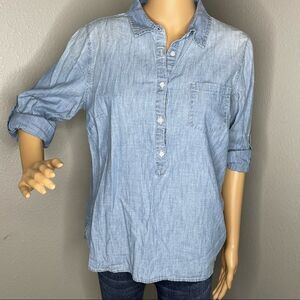 Gap Light Blue Denim Partial Button-down Long Sleeve Boyfriend Cut Shirt Medium