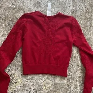 Fabletics Cropped Flora Long Sleeve Top . the most gorgeous, deep red color! Size Medium. New without tags.