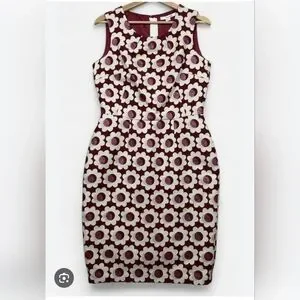 NWT Boden Harriet Daisy Jacquard Sheath Dress Size 8P (Med Petite) Cream/Mauve