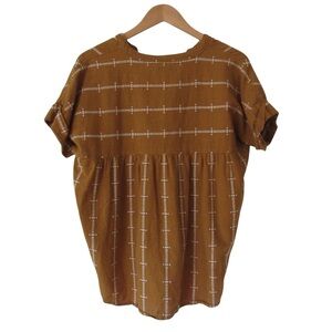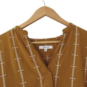 Madewell Lakeline Popover Shirttail Top in Jacquard Stripe XS Short Sleeves