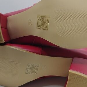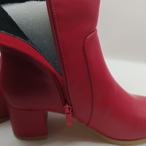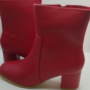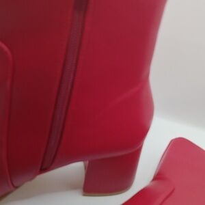Allegra K Ankle Boots Square Toe Side Zip Block Heel Faux Leather RED Sz 7.5 NEW