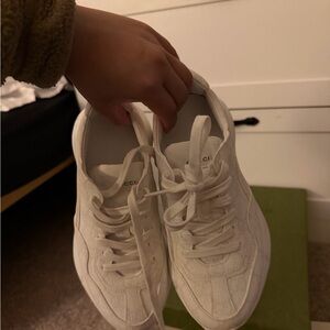 Elegant Gucci sneakers in a soft cream shade. Ideal for casual outings.