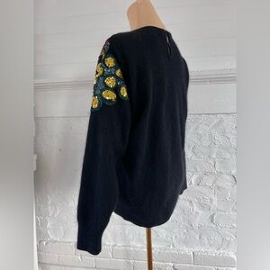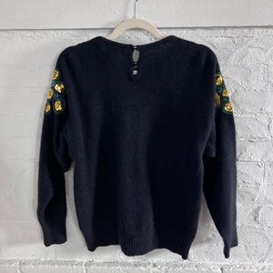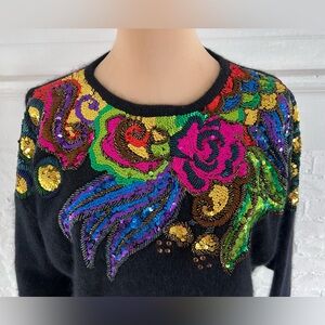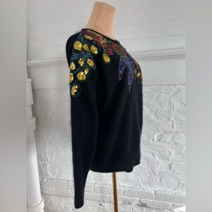 I.B. Diffusion Floral Sequined Silk Angora Sweater Black Fuzzy Vintage 90’s