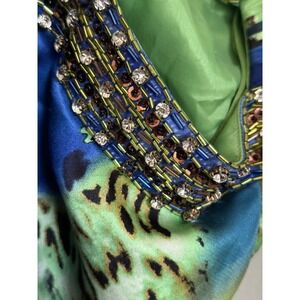 Keywords: beaded, embellished, halter, paisley, print, evening, formal, glamorous, statement, designer, silk, luxury, prom, cocktail