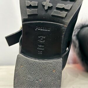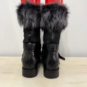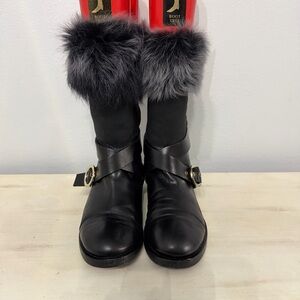 Pollini Black Leather Boots With Gray Fur Trim Size 36