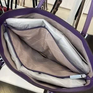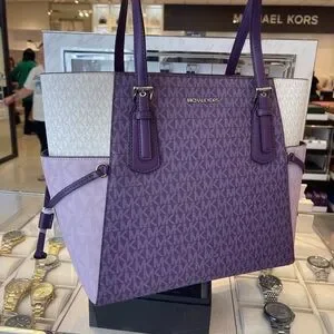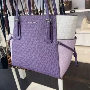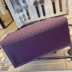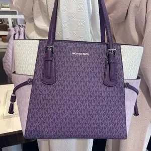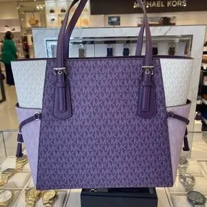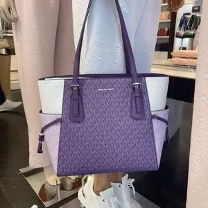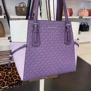 MICHAEL KORS Voyager Large Color-Block Signature Logo Shoulder Tote Dark Purple