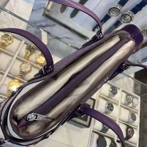 • Interior details: back zip pocket, center zip compartment
