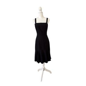 LOFT Black Fit & Flare Midi Dress Size 4 | Square Neck Sleeveless