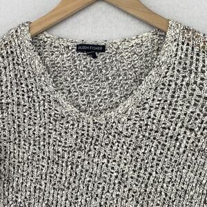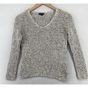 EILEEN FISHER Sweater S Cotton Marled Crochet Top V-Neck Pullover Black White