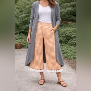 Adrienne Orange Gingham Wide-Leg Pants with Tassels