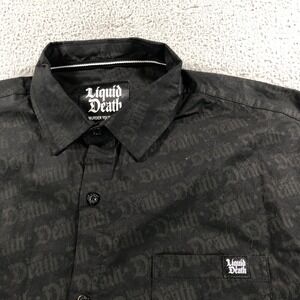 Liquid Death Shirt Mens Extra Large Black AOP Logo Long Sleeve Button Up Thirst
