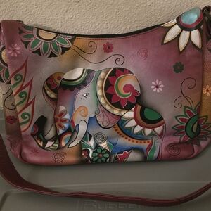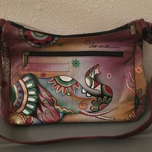ANNA BY ANUSCHKA Elephant Crossbody Hand Painted Leather Artisan Statement Purse