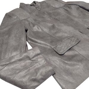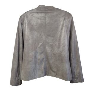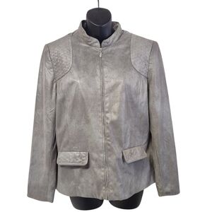 Alfred Dunner Woman Gray Silver Soft Faux Suede Zip Jacket Pockets Sz 12P