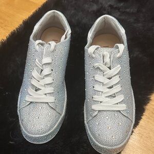 Shimmering silver sneakers with sparkling details. Lace-up style for everyday comfort. New never been worn. No box. Open to offers