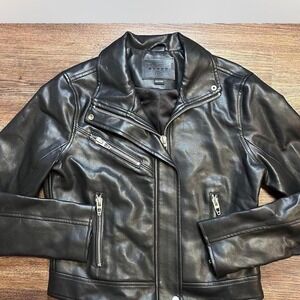 BlankNYC Black Faux Leather Moto Jacket Cropped Asymmetrical Zip Medium